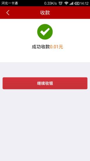 可接受河北一卡通卡(包含虚拟卡和实体卡)支付功能,完成收款,同时支持查看卡内余额和交易凭证打印功能。