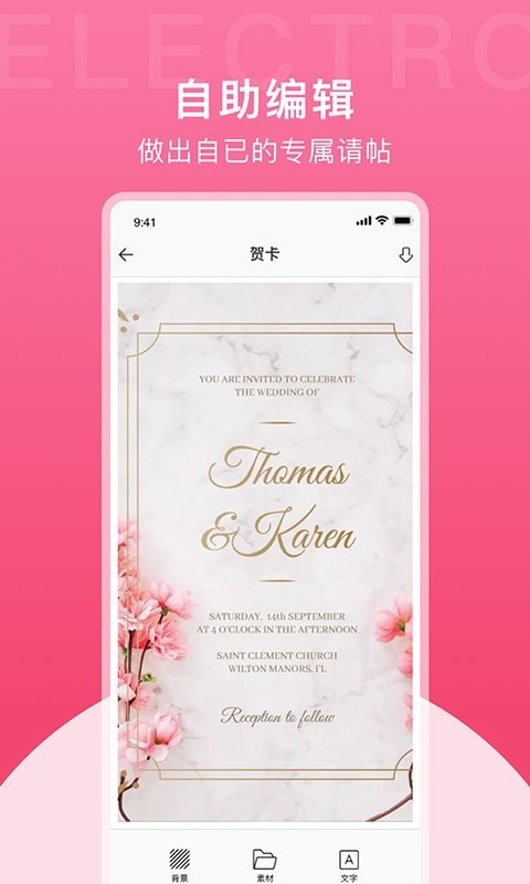 请帖制作是一款功能强大且易于使用的请柬设计工具,旨在帮助用户轻松创建个性化的邀请函。无论是婚礼、生日宴会、周年庆典,还是公司年会、宝宝满月等场合,都能找到合适的模板和设计元素。软件内置海量精美模板,涵盖中式、西式、简约、复古等多种风格,用户可根据需求自由调整颜色、字体、布局,并上传照片或添加祝福语。支持高清打印和电子分享,一键导出为图片或PDF格式,方便通过社交媒体或邮件发送给亲友。此外,软件还提供实时预览功能,确保每一处细节都符合您的期待。让请帖制作成为您活动筹备的得力助手,为重要时刻增添更多美好回忆。