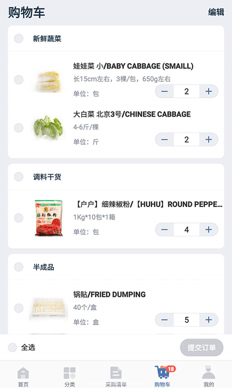 在购物车页面可调整采购数量,使用批量选择功能快速勾选多个商品,生成统一采购订单。
