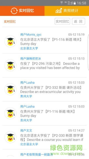 实时追踪全球考场口语话题动态,每周更新高频话题排行榜。用户可参与话题讨论,分享考试回忆,形成互动学习社区。