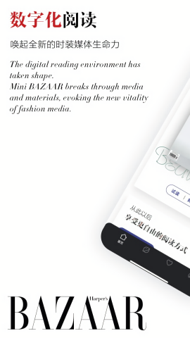 《时尚芭莎电子杂志》是国际知名时尚媒体《时尚芭莎》的官方电子版,致力于为全球用户提供权威、前沿的时尚内容。杂志内容涵盖时装、美容、艺术、文化等多个领域,每期精选顶级设计师作品、明星封面故事及独家专访,搭配高清大图和互动视频,打造极致的视觉享受。应用支持多平台同步阅读,用户可离线下载杂志,随时随地畅享时尚盛宴。此外,个性化推荐功能根据用户偏好推送相关内容,确保每位读者都能找到感兴趣的话题。无论是追踪最新潮流趋势,还是探索深度行业洞察,《时尚芭莎电子杂志》都是时尚人士不可或缺的灵感源泉。
