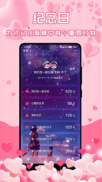 能够帮助你记住恋爱的甜蜜时光,操作非常便捷,界面设计清新可爱,深受年轻情侣喜爱。