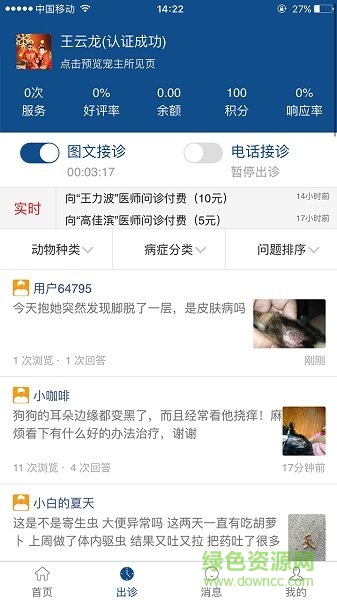 认证执业兽医师在线服务宠主,导流医院的同时还有现金收入,支持预约制和即时咨询两种模式。