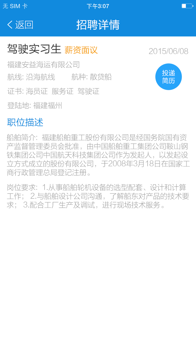 船员招聘系统:专为航运行业打造的求职招聘平台,汇集全国各大船务公司招聘信息,支持简历投递、职位搜索等功能,助力船员快速匹配理想岗位。