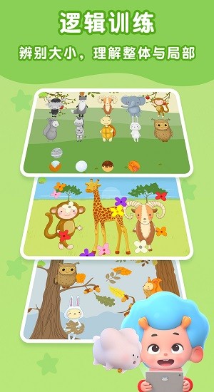 动物寻物之旅是一款专为2-5岁幼儿设计的启蒙教育应用,通过生动有趣的互动方式帮助孩子认识动物世界。游戏采用色彩鲜明的卡通画风,搭配12个精心设计的自然场景,让孩子在探索中发现斑马、松鼠等数十种动物的生活习性。应用巧妙融合了形状配对、翻牌记忆等益智玩法,不仅能培养孩子的观察力和逻辑思维,还能通过帮海狸找宝宝等互动任务提升手眼协调能力,让学习过程充满欢乐与成就感。