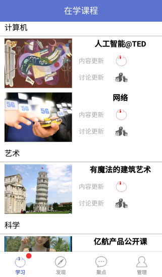 有主题的即时讨论区。每一个知识点都对应有专有的讨论区,教师和学生们可以在这里展开深入交流,共同解决学习中的疑问。