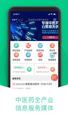 药材天地网是一款专注于中药材行业的综合性服务平台,为用户提供全面的药材信息查询、市场行情分析、供需对接及行业资讯等服务。该软件汇聚了海量中药材数据,涵盖品种、产地、价格、功效等详细信息,帮助用户快速获取精准的药材信息。无论是药材种植户、经销商、制药企业还是中医药爱好者,都能通过药材天地网轻松掌握行业动态,优化采购与销售决策。其简洁的界面设计和强大的数据支持,使其成为中药材领域不可或缺的工具。