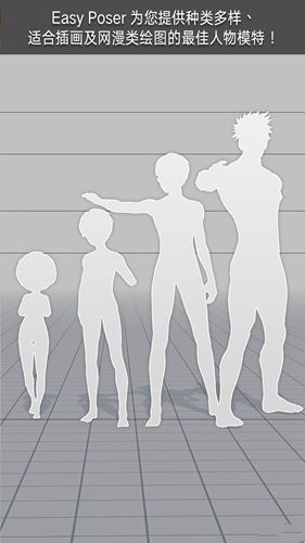软件提供四类基础人物模型:写实男性、写实女性、漫画风格女性和漫画风格男性。此外还新增了八个几何图形模型和六个道具模型,大大拓展了创作可能性。所有模型都支持自由调整和组合使用。