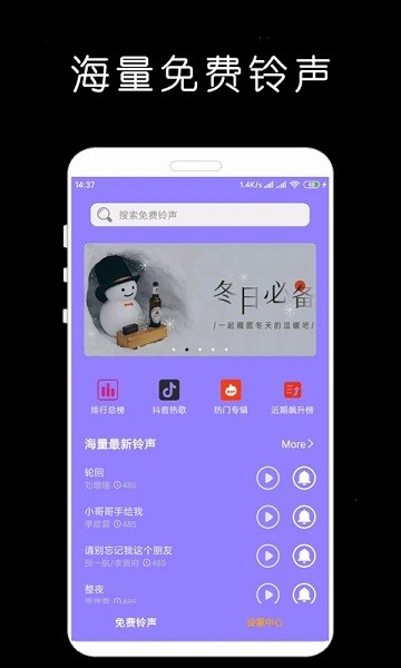 每日为你更新最热门最流行铃声,铃声好玩到根本停不下来来。紧跟音乐潮流,第一时间收录各大音乐平台热歌榜单,保证铃声资源的新鲜度和时效性。