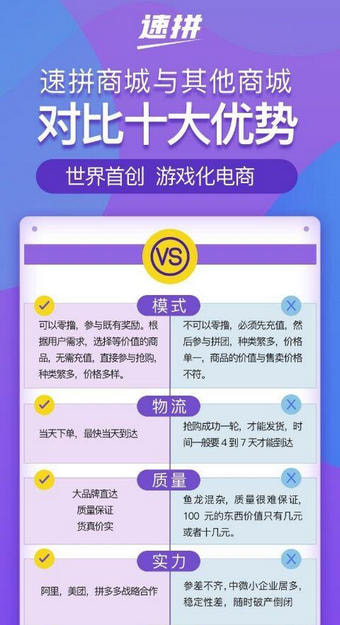 速拼商城app是一款专为精打细算的消费者打造的优质网购平台。它不仅提供丰富多样的商品选择,更通过智能算法为用户精准匹配最优惠的购物方案。在这里,用户可以享受到全年不间断的折扣优惠,还能领取各类专属优惠券,让每一笔消费都物超所值。无论是居家必备还是时尚单品,速拼商城都能以最实惠的价格满足您的购物需求,让高品质生活触手可及。