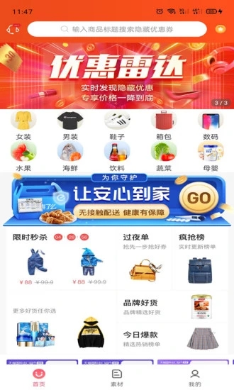 【高佣清单】精选全网优质好物,买的放心、用的安心!在这里,1折爆款天天有,1元商品也包邮,更有会员免单福利送不停!平台严格把控商品质量,确保每一件商品都经过专业团队筛选。我们还与各大品牌建立直供渠道,确保正品保障。另外不定时更新低至0元的免单秒杀,真正把商品带回家。平台还提供7天无理由退换货服务,让您购物无忧。专注于网购,网购省钱的APP,百万达人公认的省钱利器。而且点外卖、住酒店、吃、买电影票、汽车加油等,也都能省钱!