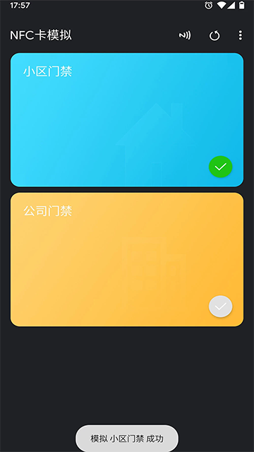点击卡片的模拟按钮:模拟过程可能需要数秒时间,期间请保持手机稳定,模拟成功后系统会有明确提示,建议用户进行测试验证。