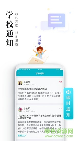 学校通知模块进行了功能升级,新增筛选功能,可以快速区分已读和未读通知。发送通知时优化了群组选择流程,先选择目标群组再编辑内容,避免误发情况。系统还实现了教师端和学生端的明确区分,当教师版登录学生账号时,会自动提示下载专用学生客户端,确保各角色使用最适合的功能模块。