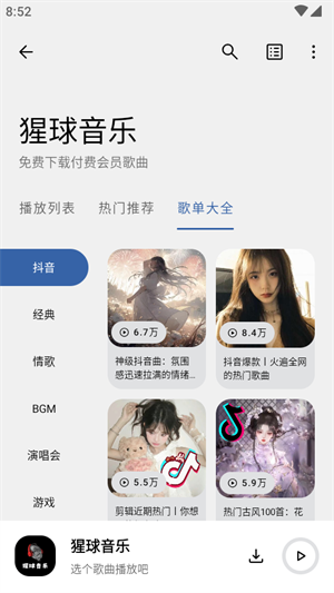 猩球音乐是一款专为音乐爱好者打造的综合性音乐平台,集音乐播放、下载、分享、社交等功能于一体。它拥有海量正版音乐资源,涵盖流行、摇滚、电子、古典等多种风格,满足不同用户的听歌需求。猩球音乐还支持个性化推荐,根据用户的听歌习惯智能推送符合口味的歌曲,让音乐探索更加轻松有趣。此外,用户可以在平台上创建自己的歌单,与好友分享音乐心得,打造专属的音乐社交圈。无论是日常放松还是专业音乐欣赏,猩球音乐都能为用户提供极致的听觉体验。