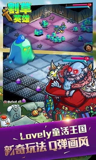 3. 敌人挑战:游戏中会出现各种敌人,玩家需要击败敌人才能继续割草。