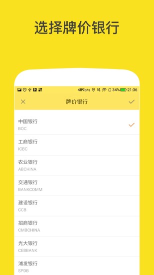 银行比价:独家支持多家银行牌价对比功能,可一键查询不同银行的外汇买卖价格差异,帮您找到最优兑换渠道。