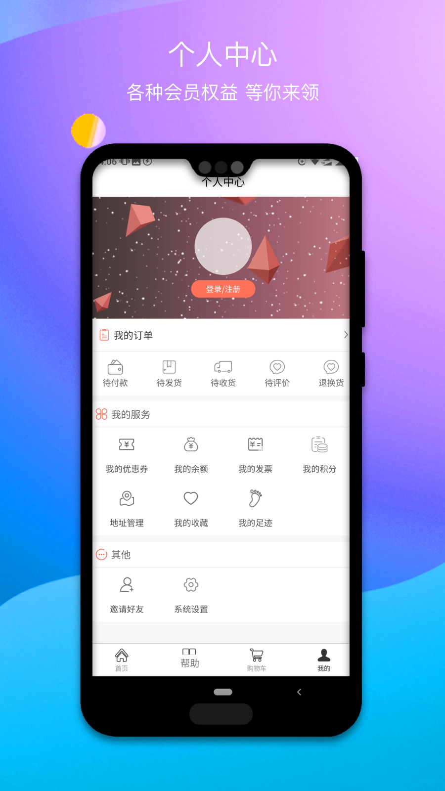 会员特权:注册成为会员可享受专属折扣、积分兑换、生日礼包等多项特权,购物越多优惠越多。