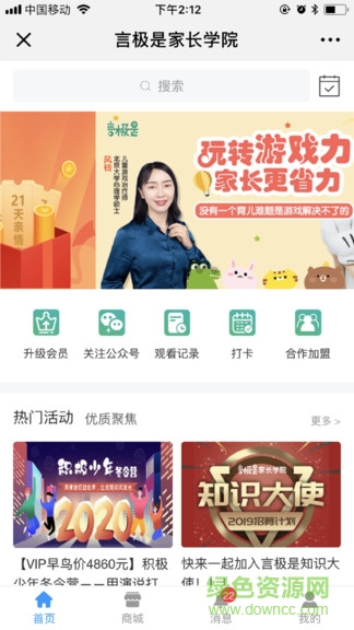 言极是家长学院安卓版操作简单便捷,支持查看最新观看记录、在线打卡等功能,是当代家长必备的育儿助手。现在就到绿色资源网下载体验,开启科学育儿之旅吧!