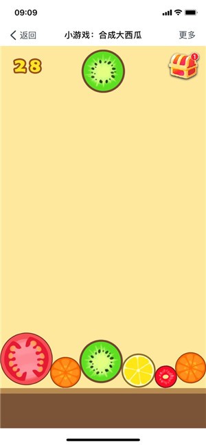 1. 水果合成:将两个相同的水果合并成更高一级的水果,最终合成大西瓜。