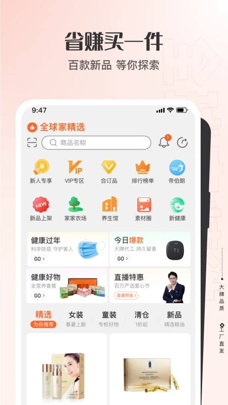 每周日9到21点,院士专家、国际学者,传授新健康知识和年轻到老的秘密;平台邀请各领域权威专家进行直播分享,内容涵盖健康养生、科学育儿、家庭理财等实用知识。百万豪礼免费送,正品大牌一折起,平台销售利润10%用于慈善公益。直播间不见不散!用户参与购物同时还能为社会公益贡献力量,实现商业价值与社会价值的统一。
