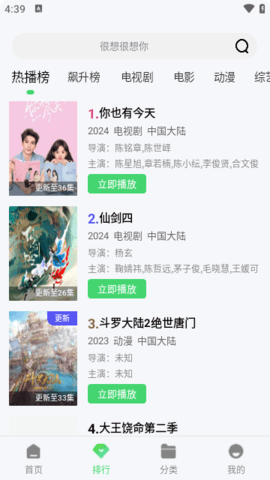 晴天影视凭借其丰富的影视资源、高清流畅的播放体验和智能推荐系统,成为影视爱好者的不二之选。无论是热门大片还是经典老片,晴天影视都能满足用户的观影需求,是一款值得推荐的视频播放软件。