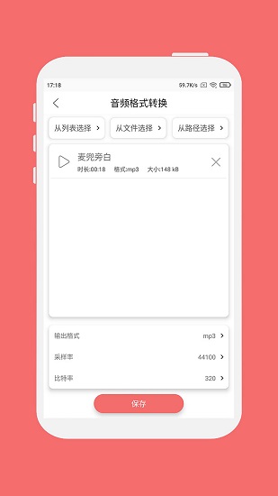 音频处理同样出色,支持mp3、aac、wav、amr、flac、wma等主流音频格式的转换。应用允许用户调整采样率和比特率等关键参数,确保输出音频达到理想品质。无论是制作手机铃声还是处理专业音频素材,格式大师都能提供完美的解决方案。