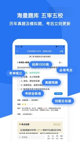 口腔考研执医app是一款专为口腔医学考生打造的高效学习软件,旨在帮助用户系统化备考并顺利通过各类口腔医学考试。该软件整合了海量优质学习资源,涵盖理论知识和实践技能两大板块,让考生能够根据自身薄弱环节进行针对性强化训练。无论是基础薄弱的初学者还是需要冲刺提分的老考生,都能在这里找到适合自己的学习方案。