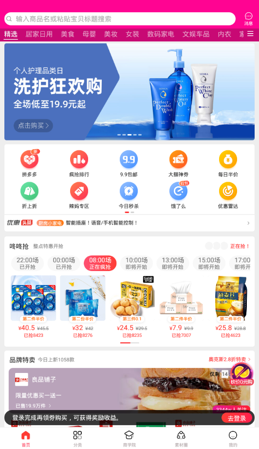 每日更新数万张淘宝天猫专属大额优惠券,让您不错过任何省钱机会。平台与全网上万家知名品牌建立深度合作,第一时间获取最新优惠信息。独创的分享赚钱功能,让您动动手指就能轻松赚取商品佣金。平台定期推出品牌商品一折抢购活动,真正实现"抢到就是赚到"的购物体验。特别设立的平价专区,日用百货、休闲零食、潮流穿搭等商品低至几元起,让精打细算成为生活常态。