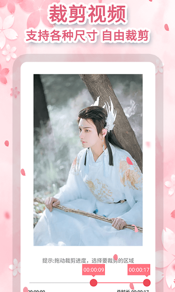 剪切视频:支持任意尺寸比例的视频进行裁剪,也可巧妙的实现去水印把水印去除,可选择输出视频清晰度。提供16:9、1:1、9:16等多种常用比例预设。