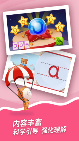 以故事城堡为主线,加上丰富生动的教学游戏,让宝宝爱上拼音!每个故事场景都经过精心设计,融入可爱的卡通角色和趣味情节,让孩子在轻松愉快的氛围中自然而然地学习拼音知识。