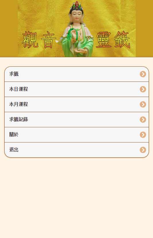观音灵签在线是一款源自香港的移动端求签解签应用,将传统观音灵签文化融入现代科技。该软件基于观音一百签的古老智慧精心打造,为用户提供便捷的线上求签体验。通过虔诚的求签过程,用户可获得观音菩萨的指引与启示,帮助解答人生困惑。应用界面简洁友好,融合了传统占卜文化与现代交互设计,让古老的灵签文化在数字时代焕发新生。