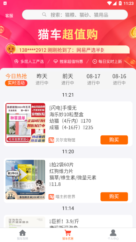 优惠:智能比价系统自动匹配全网低价,搭配平台专属优惠券和限时秒杀活动,让您以最优价格购买进口猫粮、智能猫砂盆等高端用品。