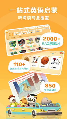 ABC Reading拥有海量的学习资源,启动APP即可看到"2000本RAZ读物"的承诺,这些资源与RAZ官网保持同步更新。软件提供从AA到Z共27个级别的分级阅读系统,让孩子可以根据自己的英语水平选择合适的起点,循序渐进地提升阅读能力。
