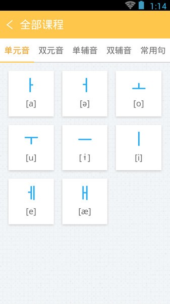 软件功能全面而实用:每个音标都配有专业教读音频,通过反复聆听和跟读掌握正确发音;支持点读功能,用户可以针对不熟悉的音标进行重点练习;除了音标学习,还包含64个实用例句,帮助用户在实际语境中运用所学知识;详细的书写顺序演示图,让用户轻松掌握韩文字母的正确写法;完全不受时间地点限制,满足用户随时随地的学习需求;完整收录韩语全部40个音标,是学习韩语发音的必备工具。