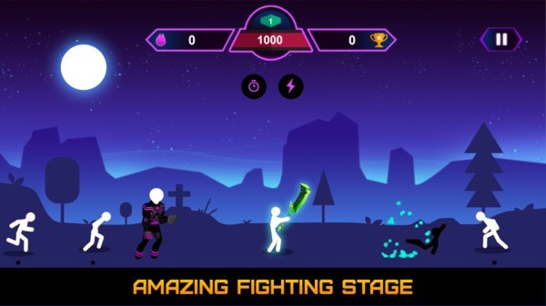 1. 独特的火柴人角色设计,每个角色都有独特的技能和战斗风格。