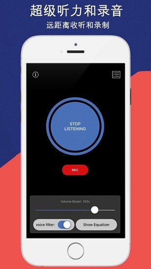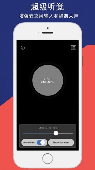hearboost最新版是一款专业的音频增强工具,能够显著提升声音的清晰度和音量。它采用先进的降噪技术,有效过滤环境噪音,突出人声部分,让用户在嘈杂环境中也能获得清晰的听觉体验。无论是听力障碍人士需要辅助聆听,还是普通用户想要录制远距离声音,这款应用都能完美胜任。其简洁直观的操作界面和强大的功能组合,使其成为日常生活和专业场景中的得力助手。