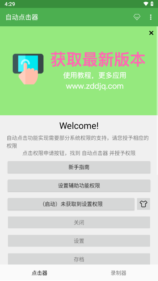 进入自动点击器应用后,首先需要在首页中找到悬浮窗权限设置选项。这是确保控制面板能够正常显示的关键步骤。