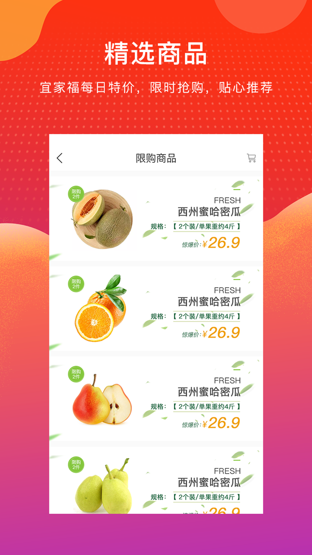 让用户既有美味熟食,又有生鲜直采食材。限购商品、特价商品日日推送,让用户体验好吃、安全、营养、健康、方便、实惠的理念。平台提供智能化的购物清单功能,可以根据用户的历史购买记录和偏好自动生成推荐清单。购买生鲜商品需要支付;用户可分享好吃的商品给自己的好友,让更多的小伙伴享受到宜家福的美食。平台还支持多种支付方式,包括微信、支付宝、银联等,满足不同用户的支付需求。特价商品天天更新,买菜同时懂,更懂你。平台还提供会员积分制度,购物可累积积分兑换优惠券或礼品。宜家福生鲜致力于让每个家庭买得省心,吃得放心,满足对吃的高品质要求。商品涵盖:时令、新鲜蔬菜、肉蛋熟食、活鲜水产、饮料、粮油速食、日用百货等,最0分钟送达,更有线上新用户专享优惠券!
