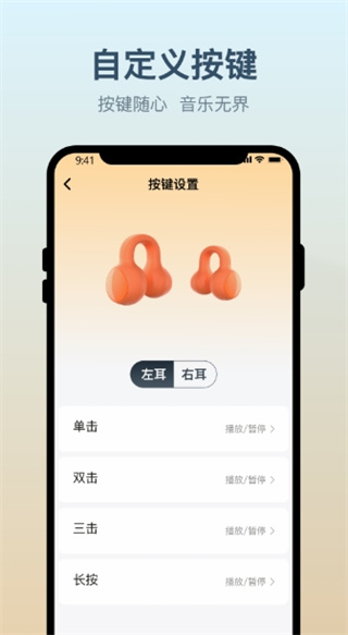 该app提供了全面的按键自定义功能,用户可以根据个人使用习惯重新定义每个按键的操作。无论是单机、双击还是长按操作,都可以设置为播放控制、音量调节、语音助手唤醒等不同功能。这种高度个性化的设置方式不仅大大提升了操作便利性,还能让用户打造出最适合自己的操作逻辑。比如运动爱好者可以将双击设置为切换运动模式,而商务人士则可以将长按设置为快速启动会议模式。