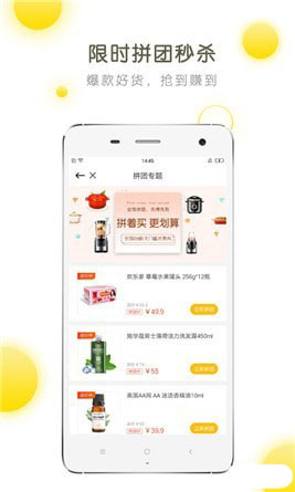 限时拼团:每天推出超值爆款商品,限时拼团活动让你以最低价抢购,抢到就是赚到。