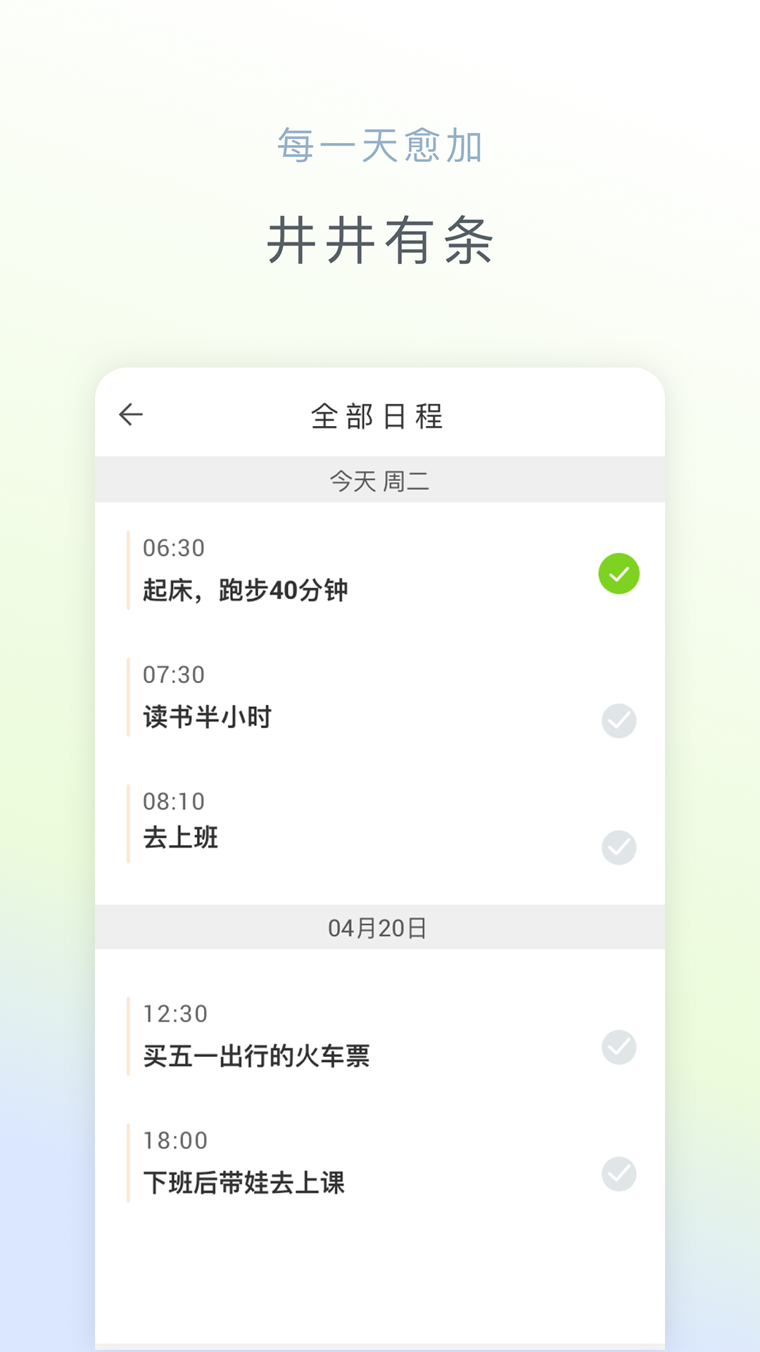 - 提供全方位的日程管理服务,支持自定义重复周期和优先级设置。系统内置20+生活场景模板,包括服药提醒、会议预约等实用功能。智能提醒系统会通过多种方式确保您不会错过任何重要事项。完善的完成度统计功能,帮助您持续优化时间分配方案。