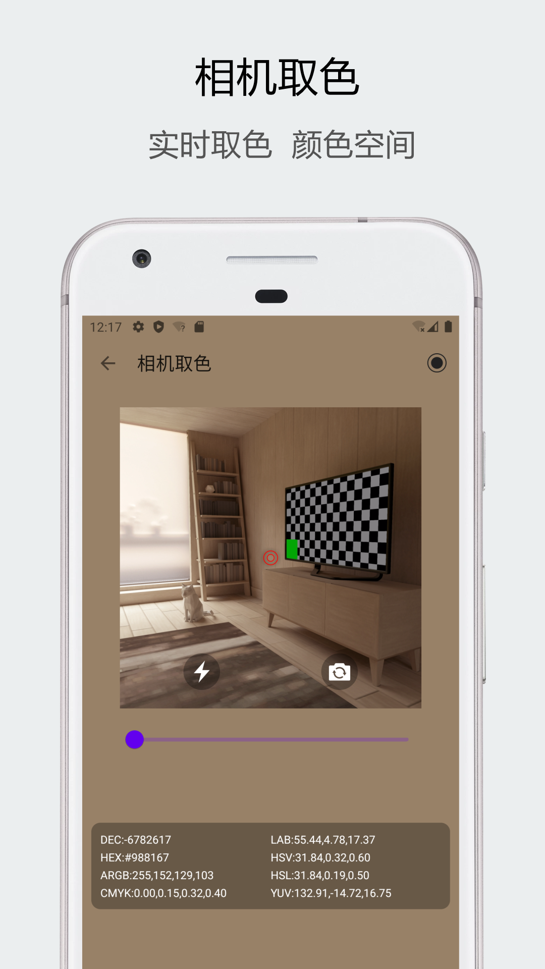 相机取色:使用摄像功能,无需拍照实时识别颜色,适合快速记录生活中的色彩灵感;