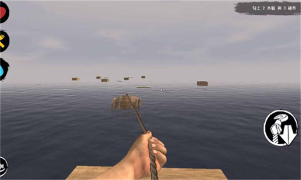 1. 物资收集:玩家可以使用钩子收集漂浮的物资,如木板、塑料和绳索。