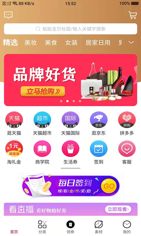 平台提供丰富的商品分类导航,包括天猫专区、天猫超市、天猫国际、京东专区、拼多多专区等主流电商平台入口。同时还设有淘礼金专区、生活优惠券、每日签到领红包等特色板块,更有专业客服团队随时为您解答购物疑问。