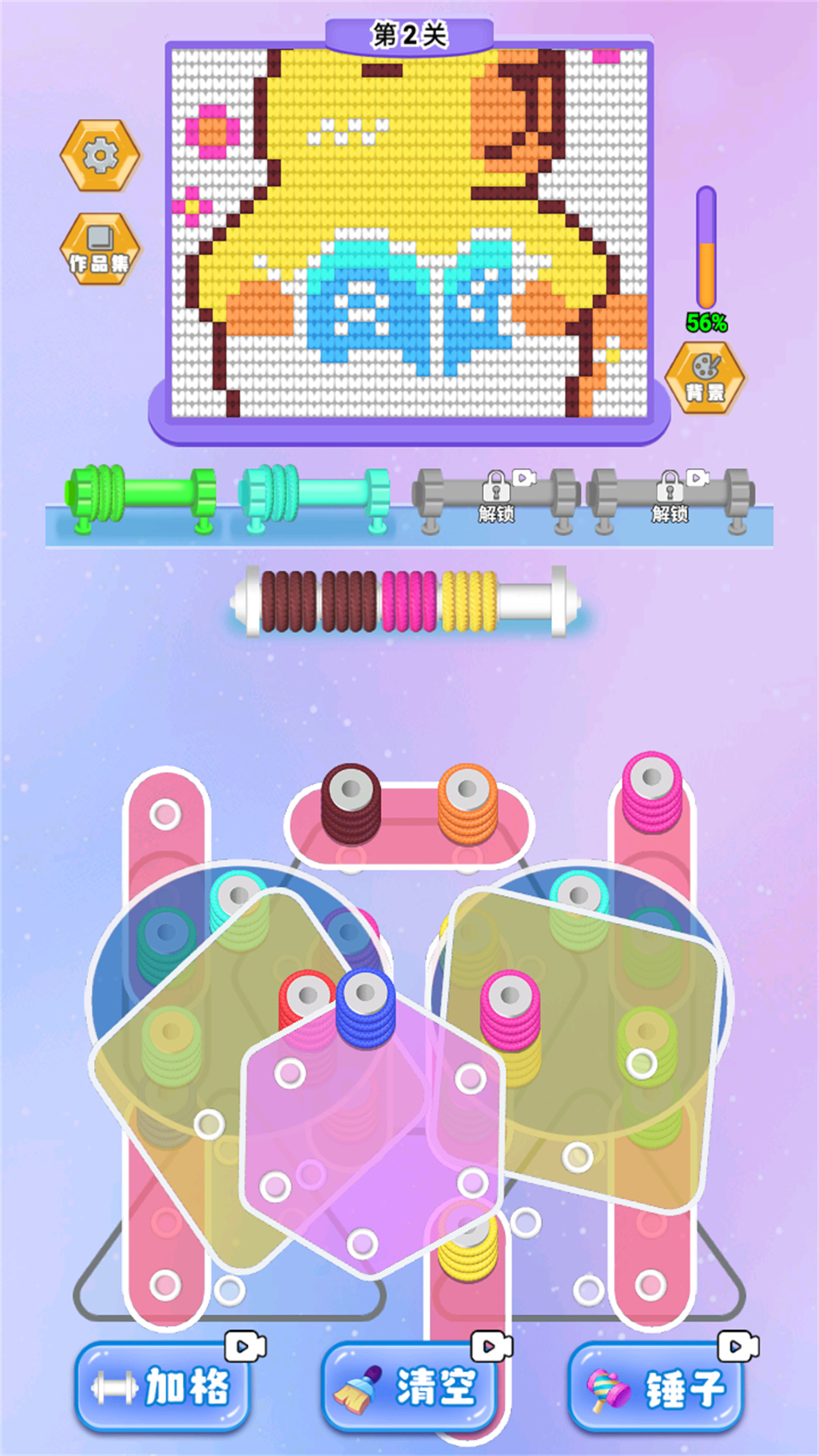 2. 关卡挑战:游戏设有多个关卡,每个关卡的毛线团形状和颜色都不同,难度逐渐增加。玩家需要运用逻辑思维和耐心,才能顺利通过关卡。