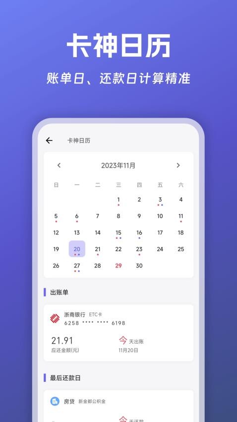 您可以随时随地查询和管理卡片信息,避免忘记还款日期、忘记消费明细等情况。云端同步功能确保所有设备上的数据实时更新,让管理更加灵活自由。