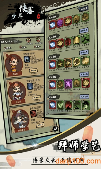 1. 角色扮演:玩家可以创建并扮演一位少年侠客,体验从初入江湖到成为大侠的成长过程。