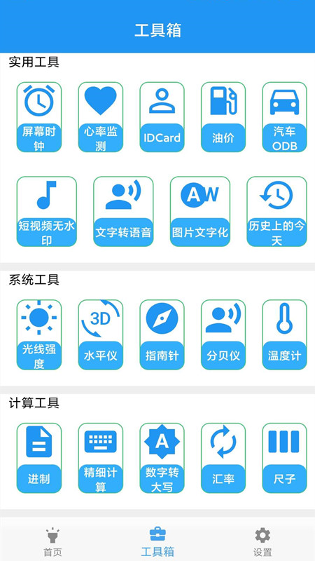 系统工具方面,app提供了光线强度检测、水平仪、指南针、分贝仪等专业级测量工具。计算工具则涵盖了进制转换、精细计算、汇率换算、虚拟尺子等实用功能,满足您各种计算需求。