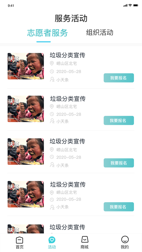 志愿者征集活动:平台定期发布各类志愿活动招募信息,涵盖社区服务、环保、教育等多个领域,方便用户快速找到感兴趣的志愿项目。