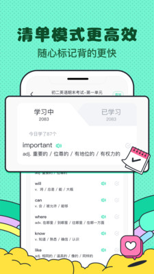 和喜欢的人一起学,互动式学习记得更牢;系统会记录角色与用户的所有对话历史,形成专属学习日记。模式更高效,随心标记背的更快;独创的颜色标记系统让重点难点一目了然。上百种精选题库,量身定制更靠谱。特别开发的AR模式能让虚拟角色出现在现实环境中,创造突破次元壁的学习体验。每月更新的主题活动,如"期末冲刺陪伴计划",让学习充满仪式感和成就感。